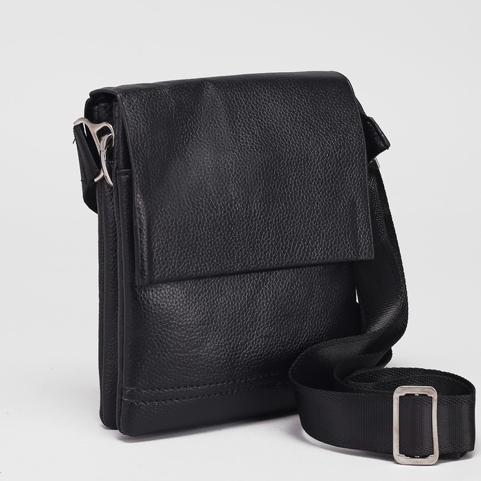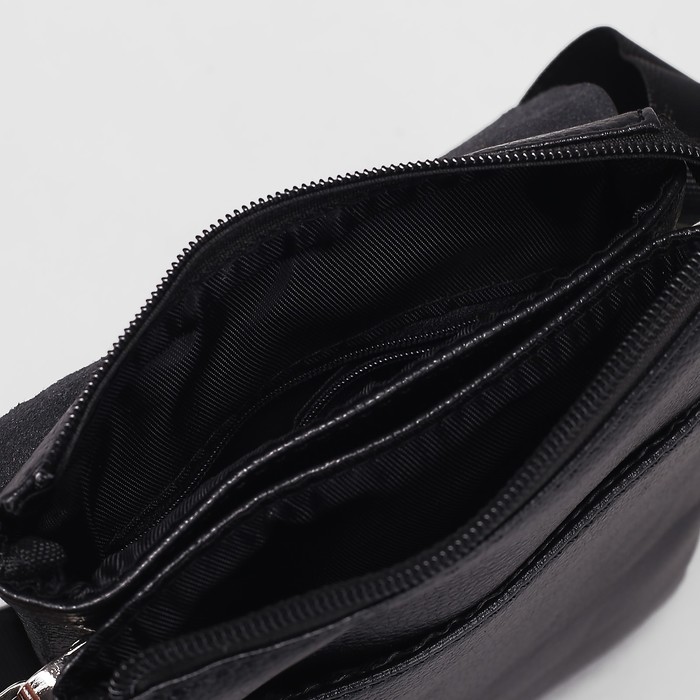 Планшет мужской, 2 отдела на молнии, 2 наружных кармана, регулируемый ремень, цвет чёрный
