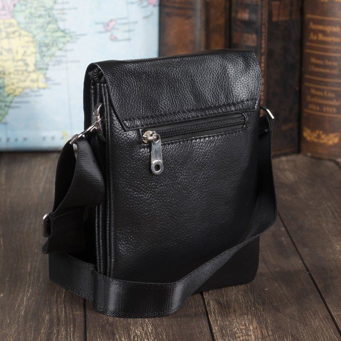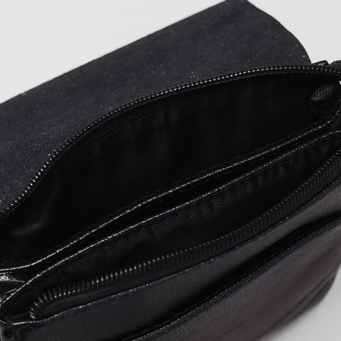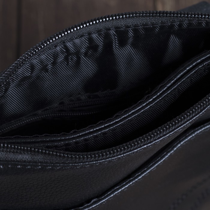 Планшет мужской, 2 отдела на молнии, 2 наружных кармана, регулируемый ремень, цвет чёрный