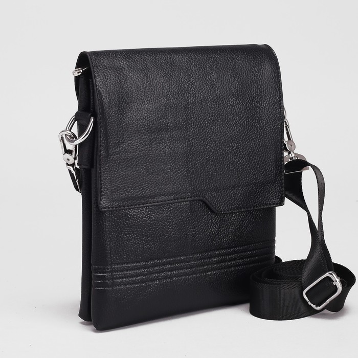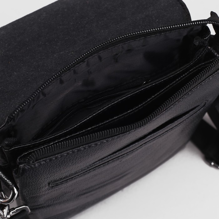 Планшет мужской, 2 отдела на молнии, 2 наружных кармана, регулируемый ремень, цвет чёрный