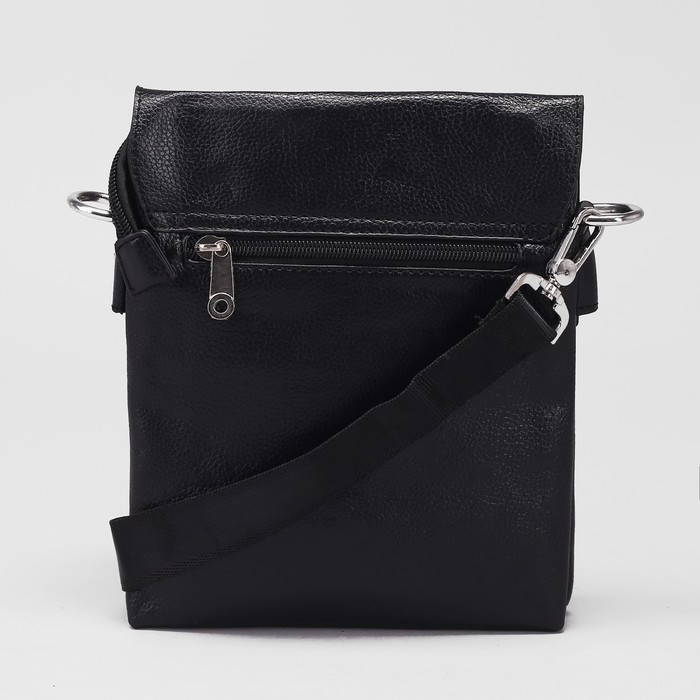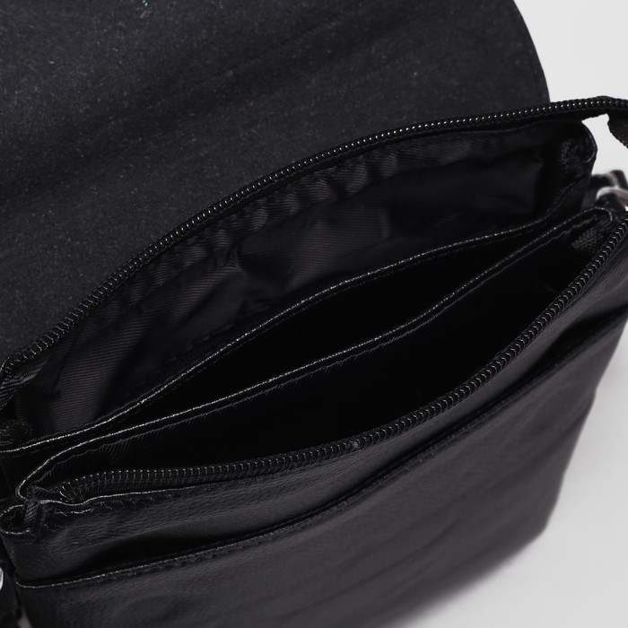 Планшет мужской, 2 отдела на молнии, 2 наружных кармана, регулируемый ремень, цвет чёрный