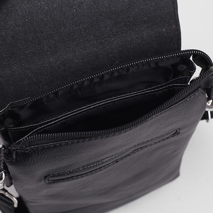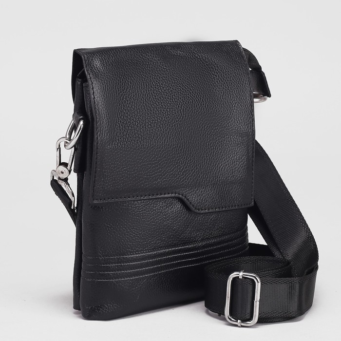 Планшет мужской, 2 отдела на молнии, 2 наружных кармана, регулируемый ремень, цвет чёрный