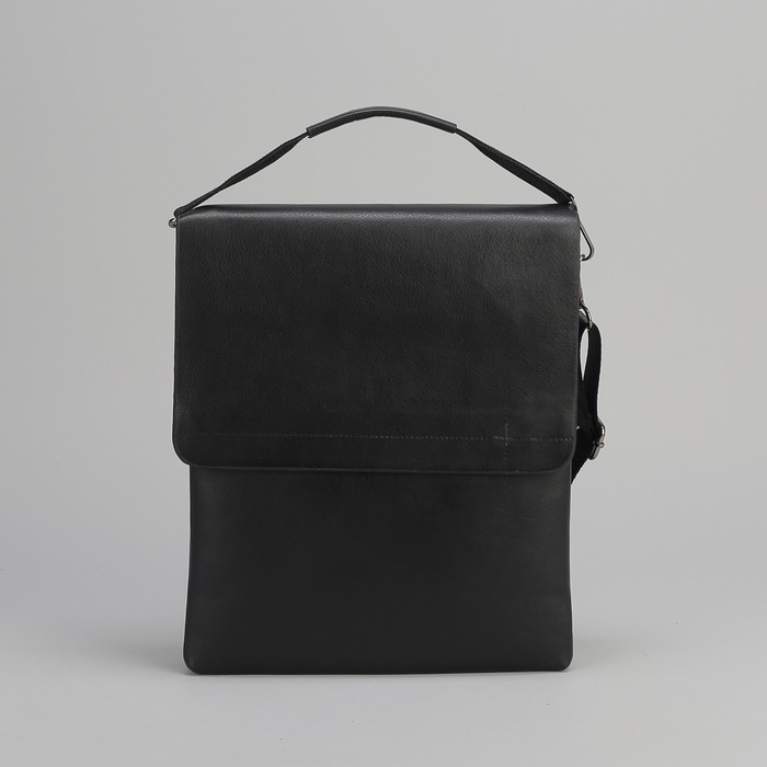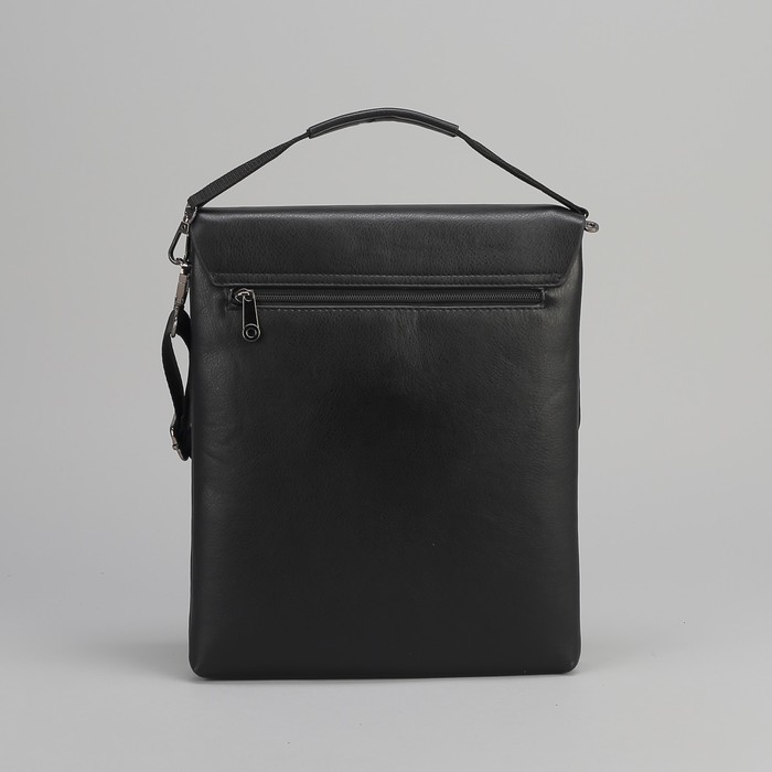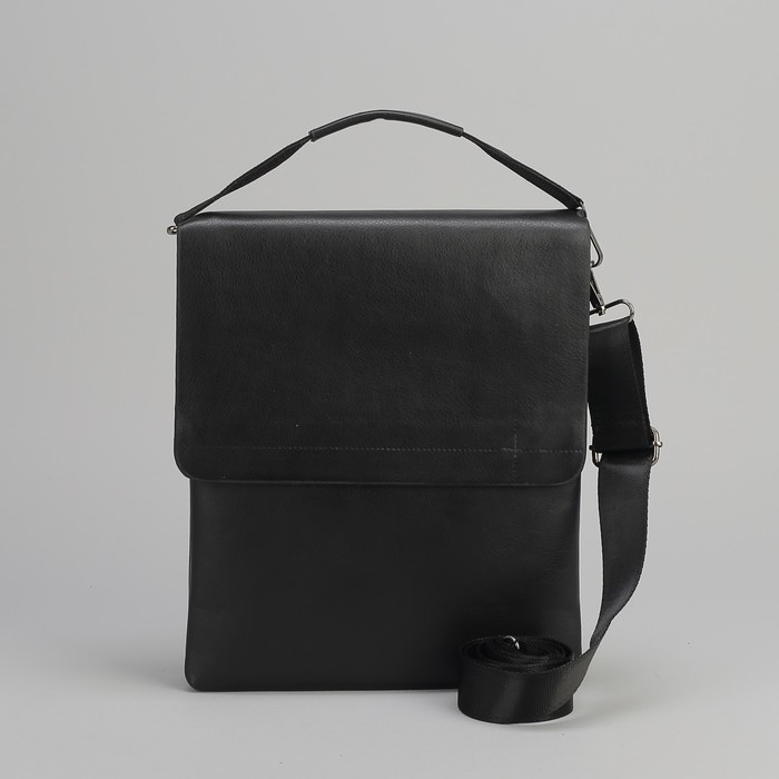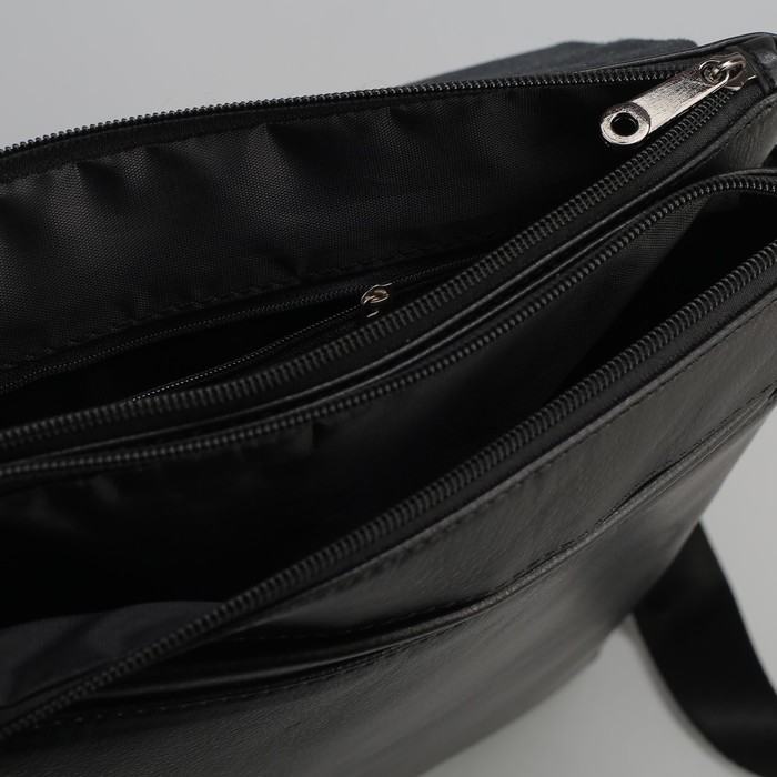Планшет мужской, 2 отдела на молниях, 2 наружных кармана, длинный ремень, с ручкой, цвет чёрный