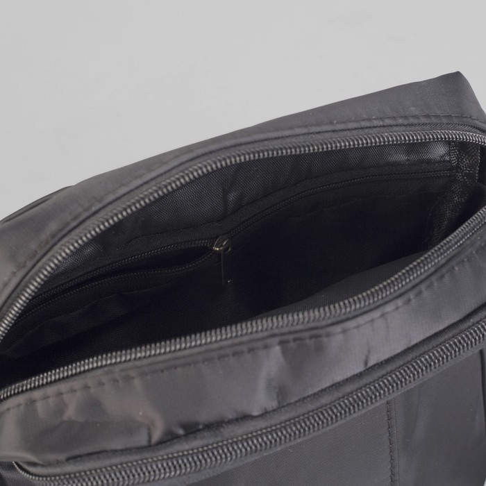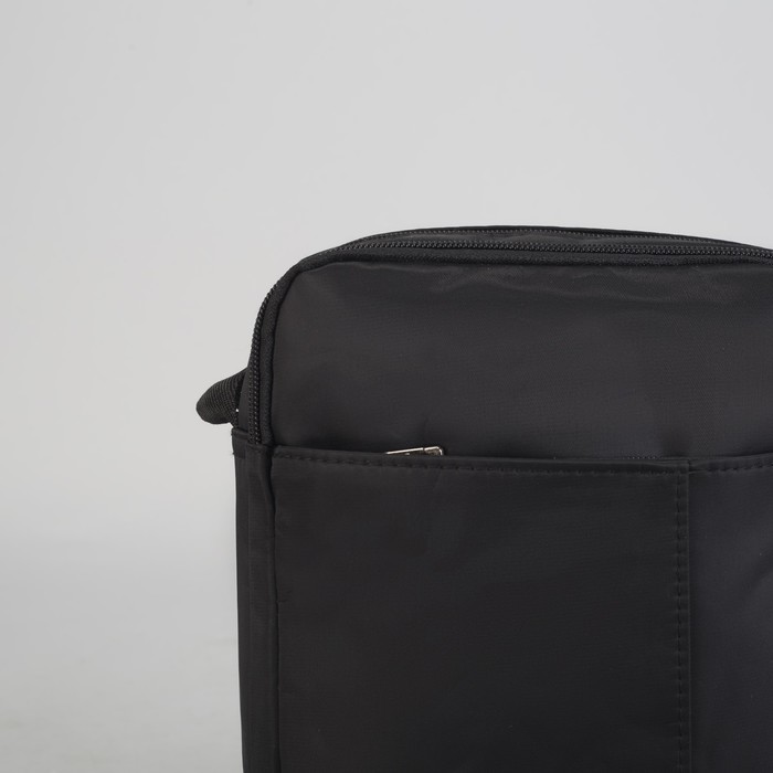 Планшет мужской, 2 отдела на молниях, 2 наружных кармана, регулируемый ремень, цвет чёрный