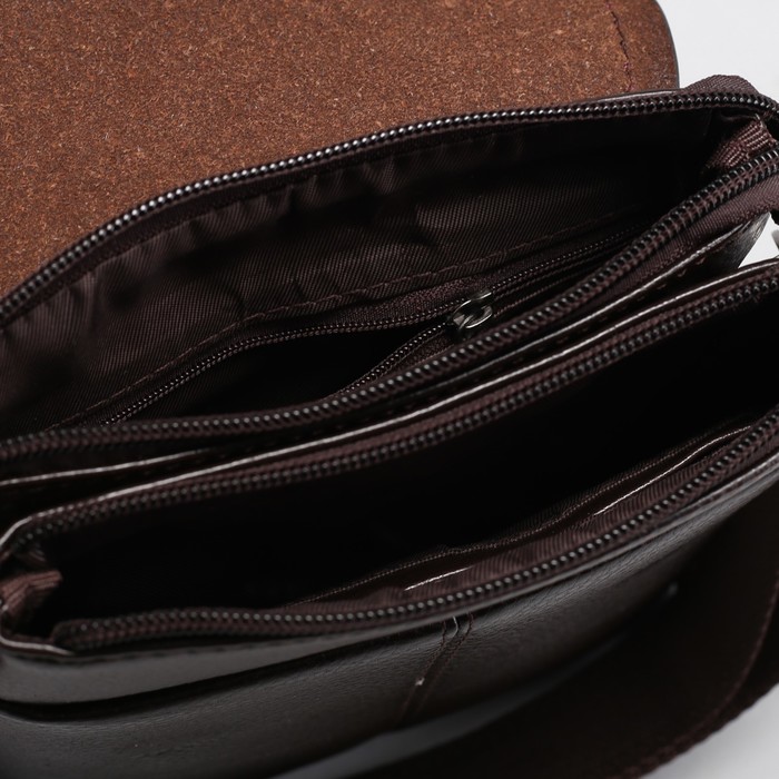 Планшет мужской, 2 отдела на молниях, 2 наружных кармана, регулируемый ремень, цвет коричневый