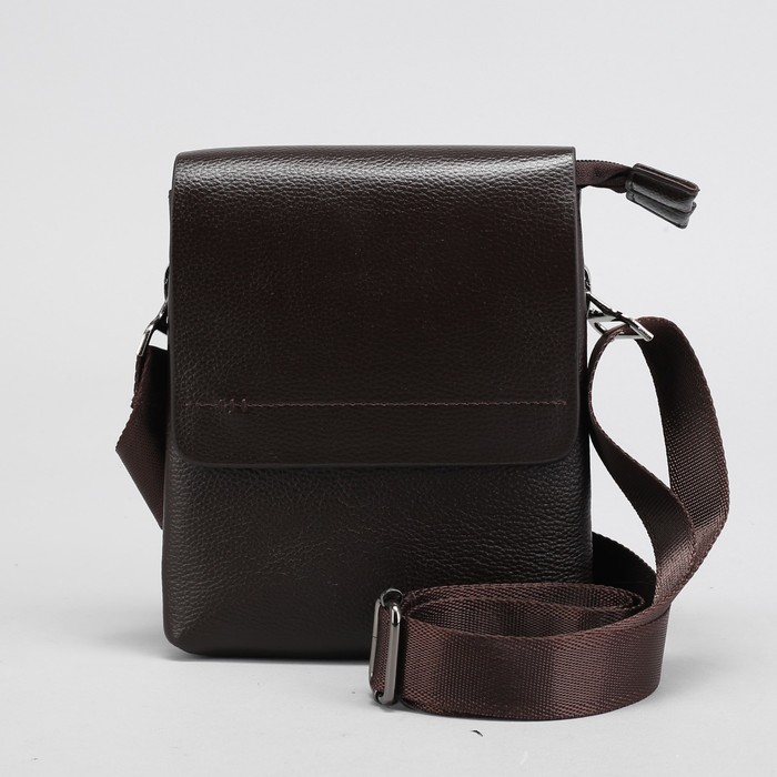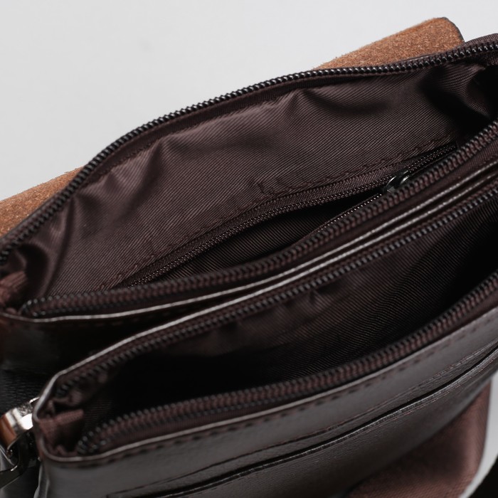Планшет мужской, 2 отдела на молниях, 2 наружных кармана, регулируемый ремень, цвет коричневый