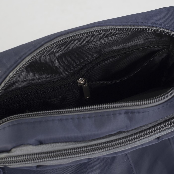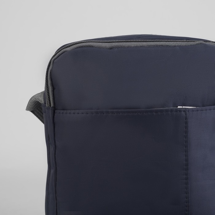 Планшет мужской, 2 отдела на молниях, 2 наружных кармана, регулируемый ремень, цвет синий