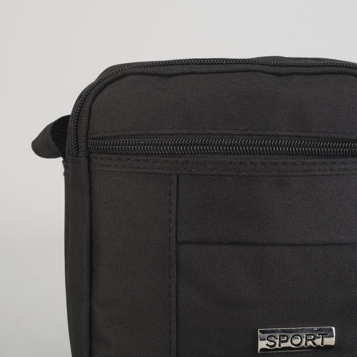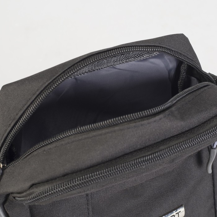 Планшет мужской, 2 отдела на молниях, наружный карман, регулируемый ремень, цвет чёрный