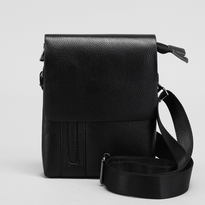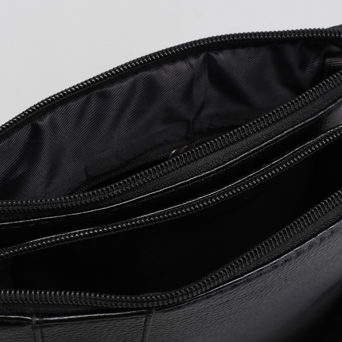 Планшет мужской, 2 отдела на молниях, наружный карман, регулируемый ремень, цвет чёрный