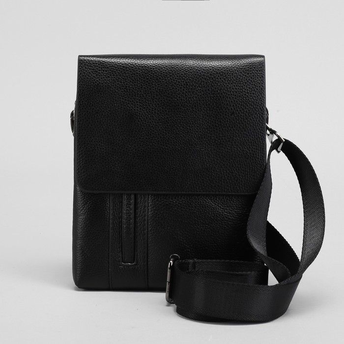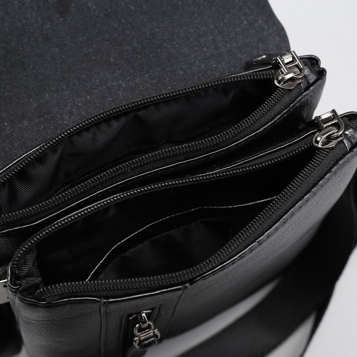 Планшет мужской, 2 отдела на молниях, наружный карман, регулируемый ремень, цвет чёрный