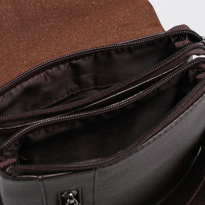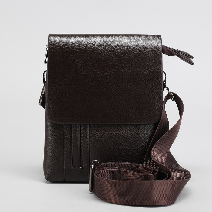 Планшет мужской, 2 отдела на молниях, наружный карман, регулируемый ремень, цвет коричневый