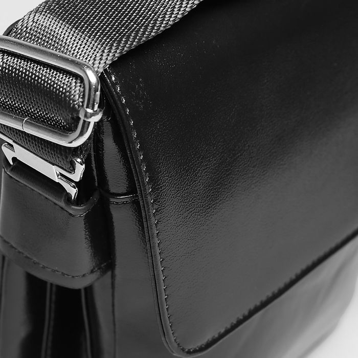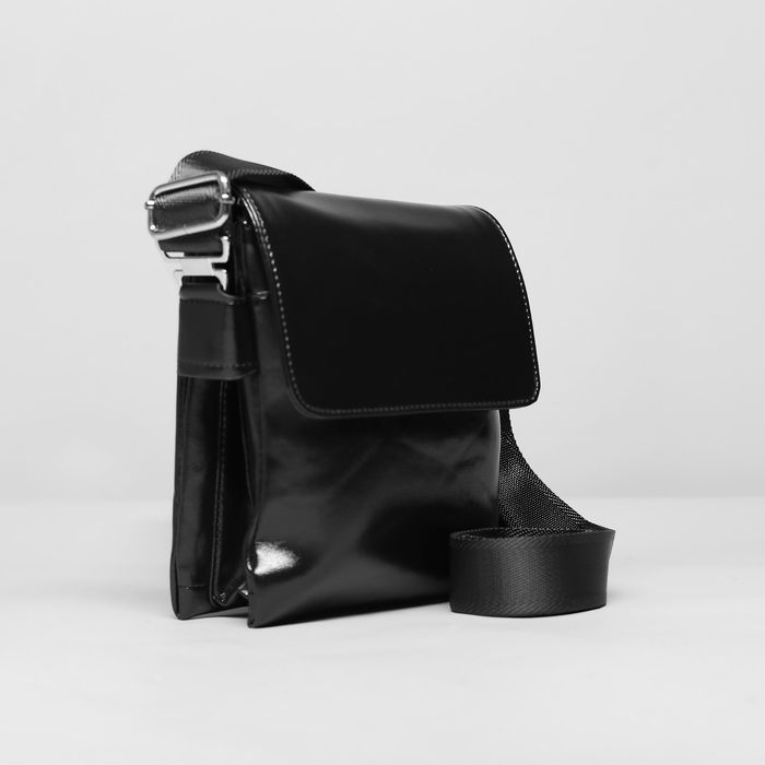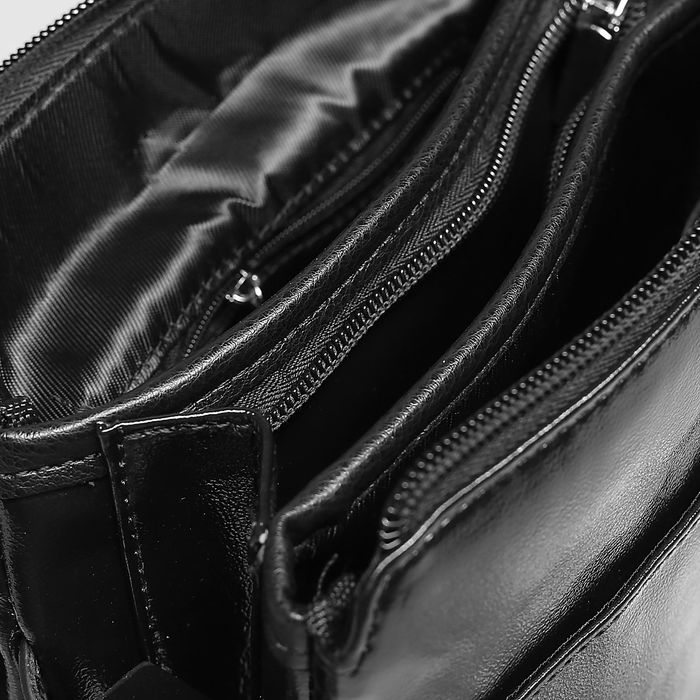 Планшет мужской, 3 отдела, 2 наружных кармана, длинный ремень, цвет чёрный