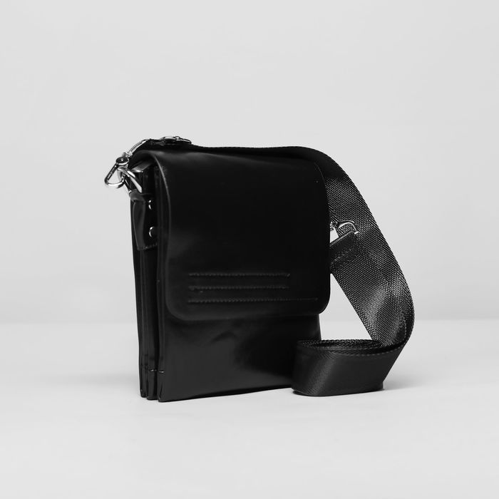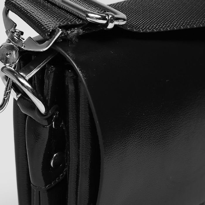 Планшет мужской, 3 отдела, 2 наружных кармана, длинный ремень, цвет чёрный
