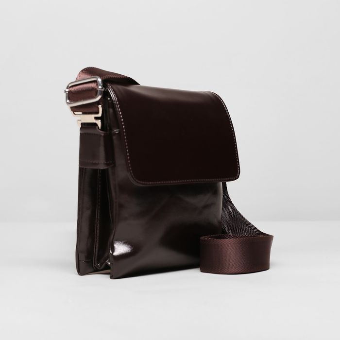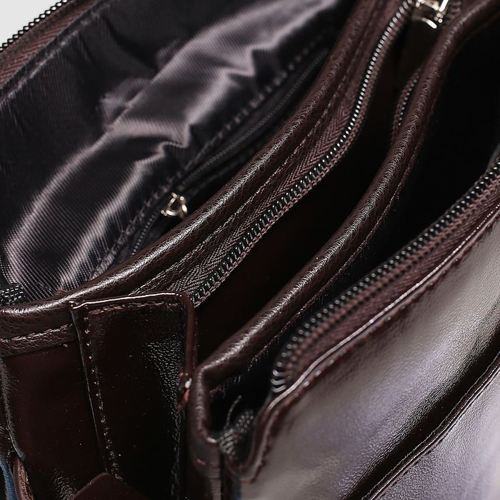 Планшет мужской, 3 отдела, 2 наружных кармана, длинный ремень, цвет коричневый