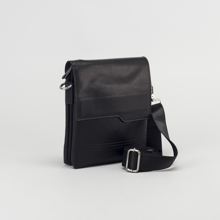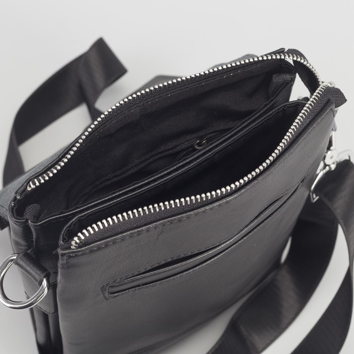 Планшет мужской, 3 отдела на молнии, 2 наружных кармана, длинный ремень, цвет чёрный