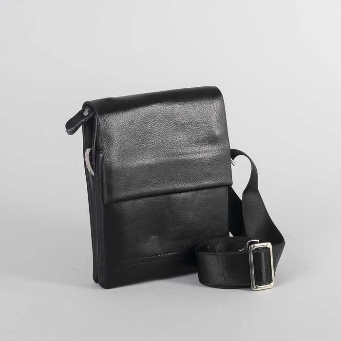 Планшет мужской, 3 отдела на молнии, 2 наружных кармана, длинный ремень, цвет чёрный