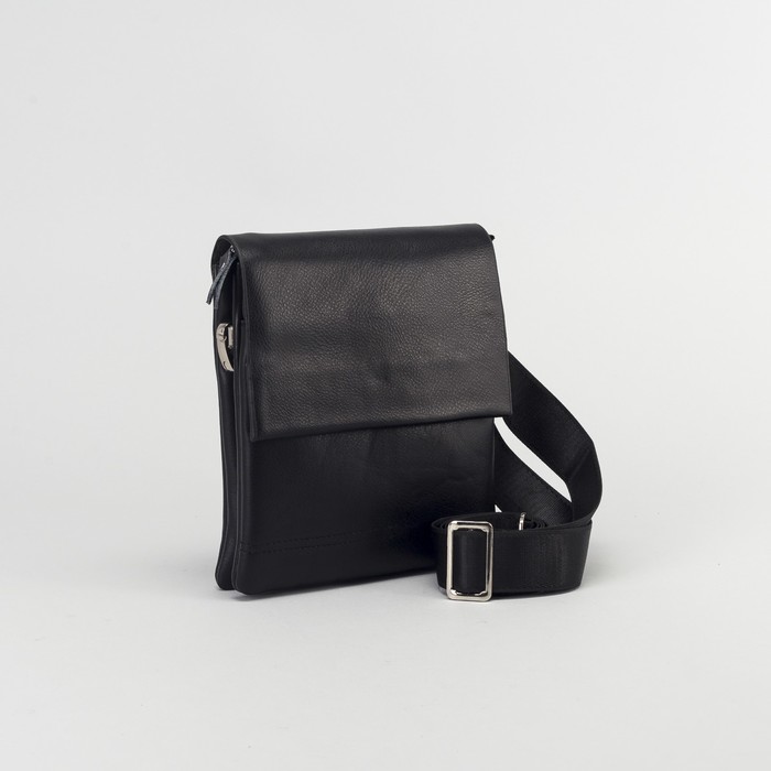 Планшет мужской, 3 отдела на молнии, 2 наружных кармана, длинный ремень, цвет чёрный