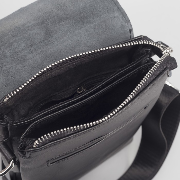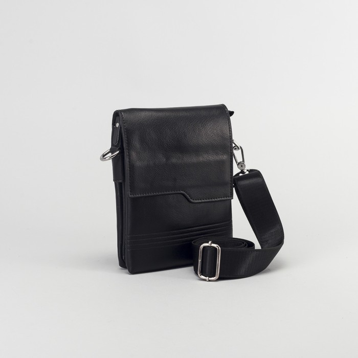 Планшет мужской, 3 отдела на молнии, 2 наружных кармана, длинный ремень, цвет чёрный