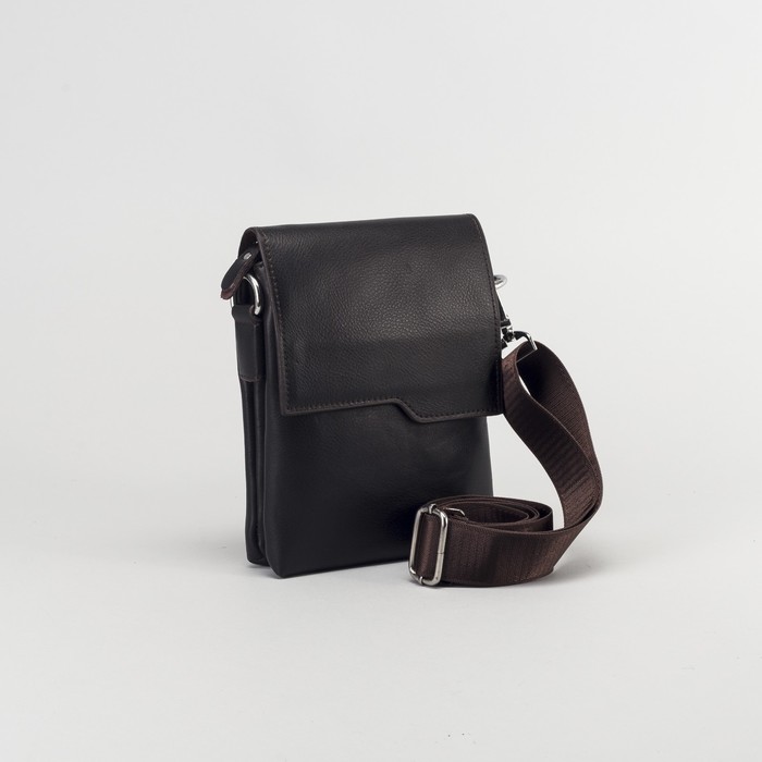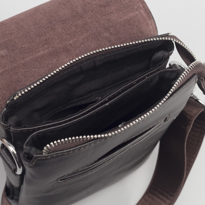 Планшет мужской, 3 отдела на молнии, 2 наружных кармана, длинный ремень, цвет коричневый