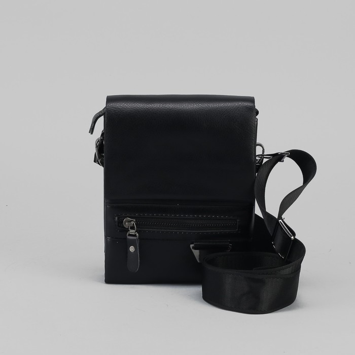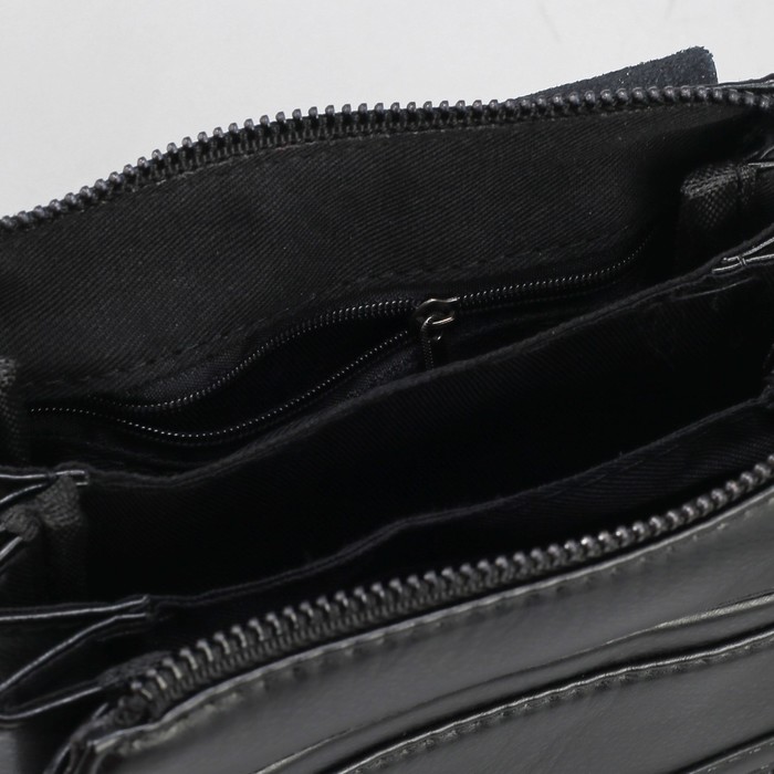 Планшет мужской, 3 отдела на молнии, 2 наружных кармана, регулируемый ремень, цвет чёрный