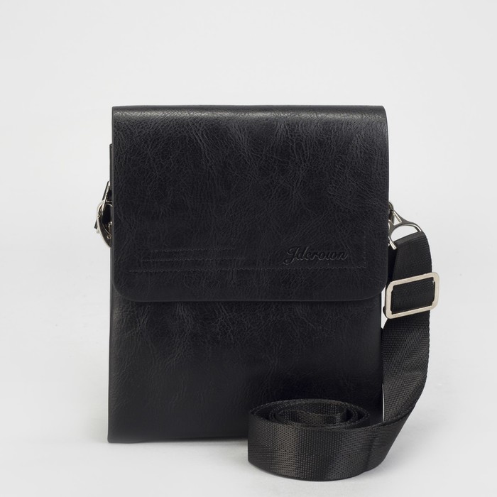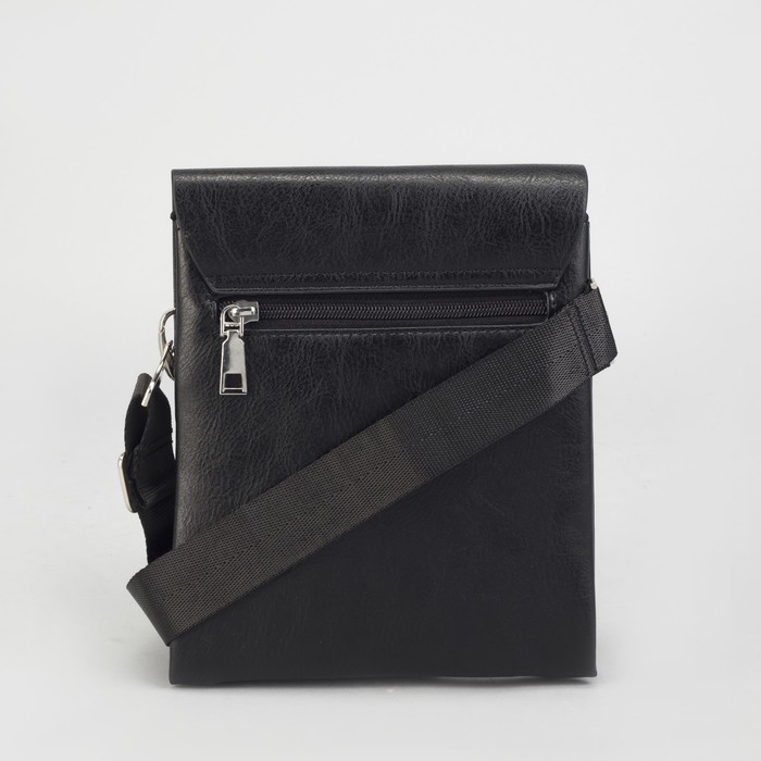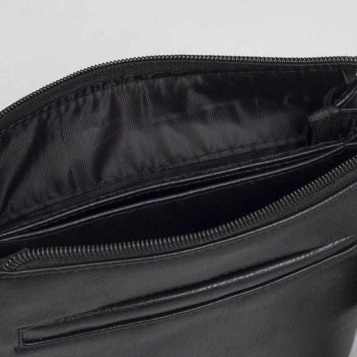 Планшет мужской, 3 отдела на молниях, 2 наружных кармана, длинный ремень, цвет чёрный