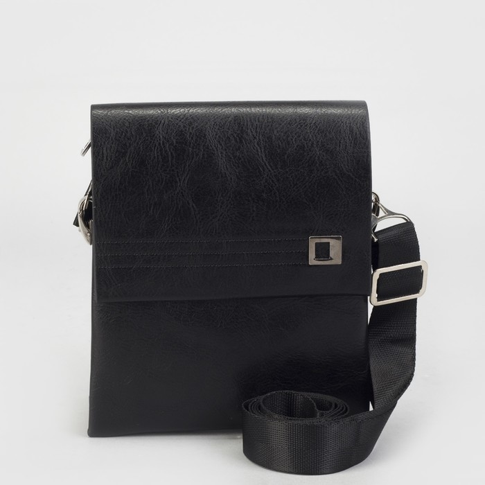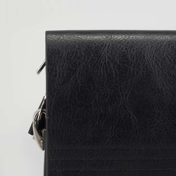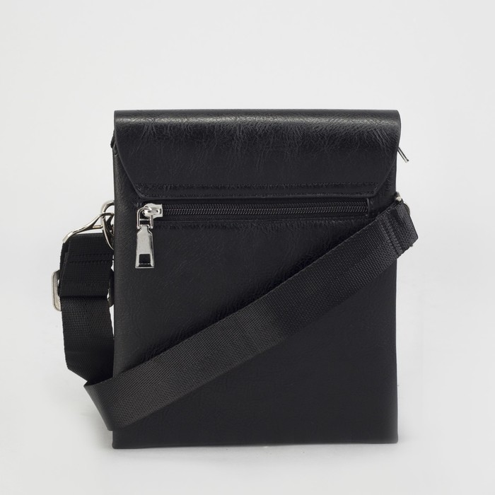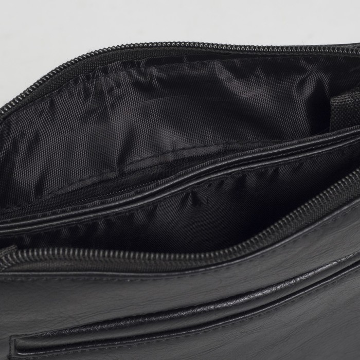 Планшет мужской, 3 отдела на молниях, 2 наружных кармана, длинный ремень, цвет чёрный