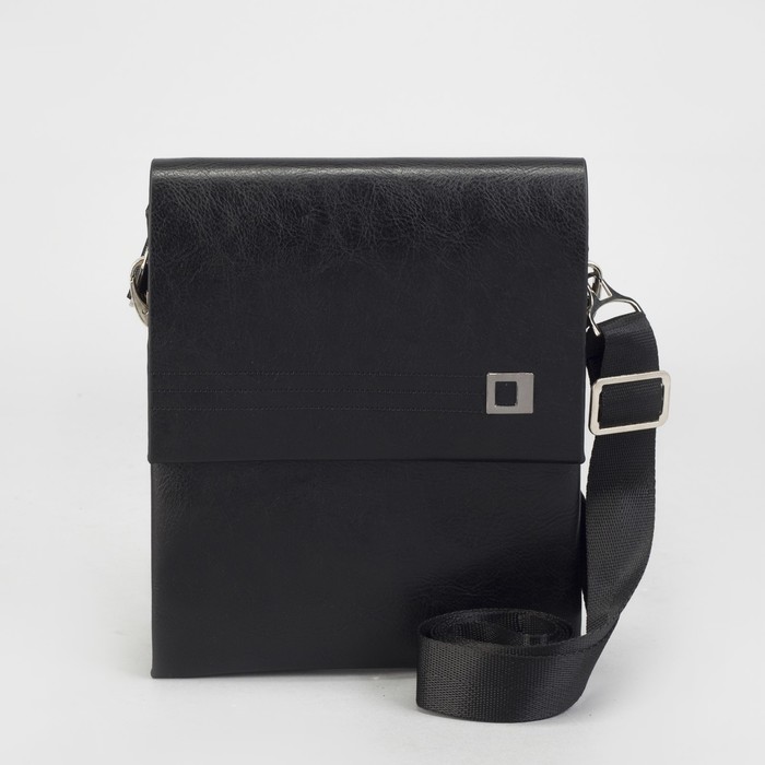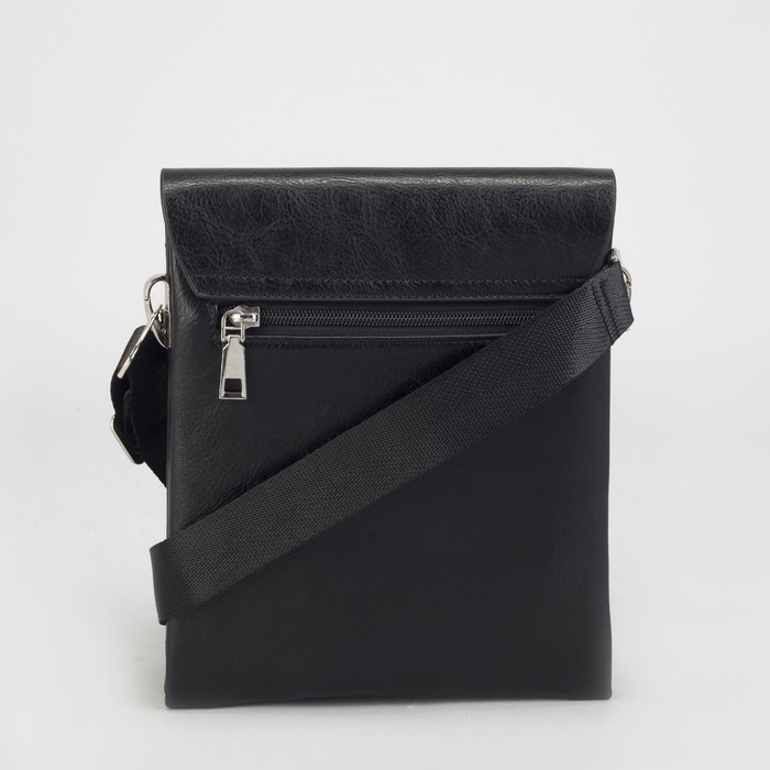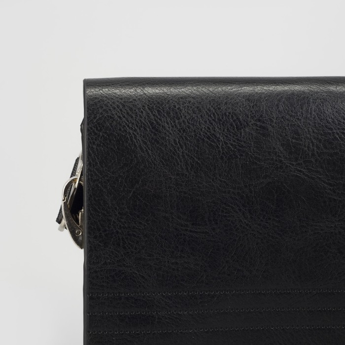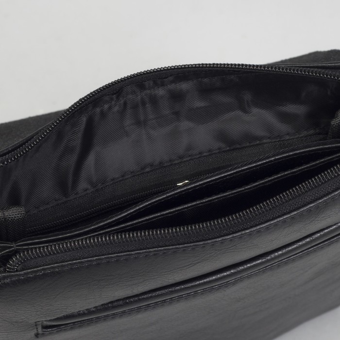 Планшет мужской, 3 отдела на молниях, 2 наружных кармана, длинный ремень, цвет чёрный