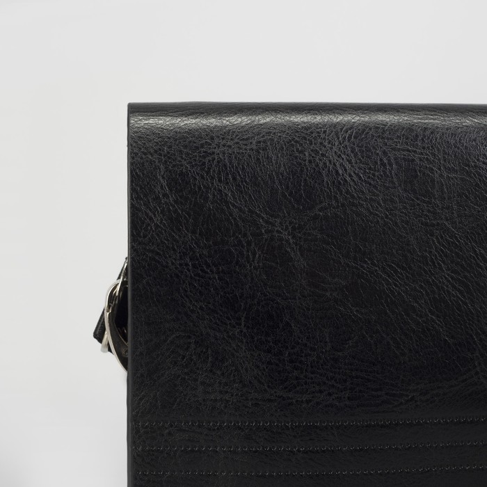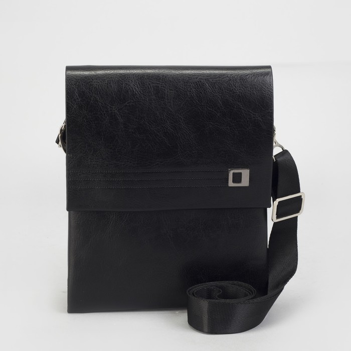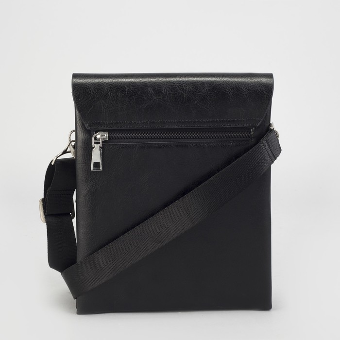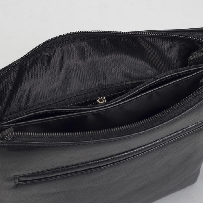 Планшет мужской, 3 отдела на молниях, 2 наружных кармана, длинный ремень, цвет чёрный