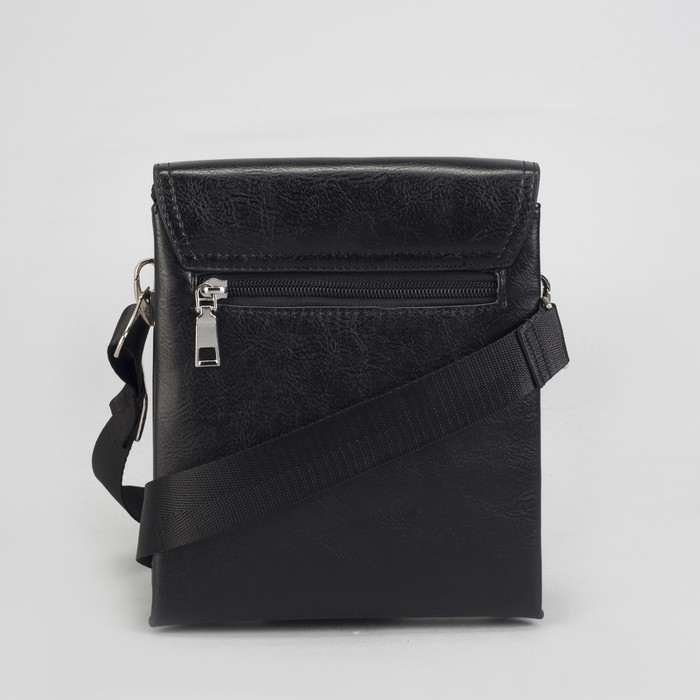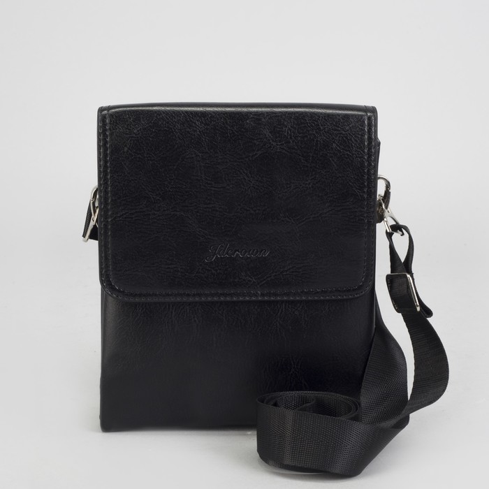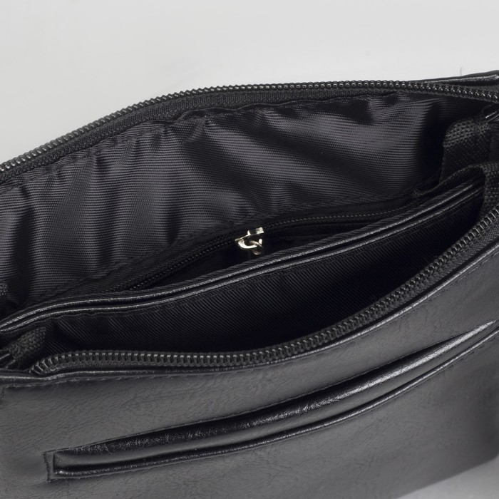 Планшет мужской, 3 отдела на молниях, 2 наружных кармана, длинный ремень, цвет чёрный