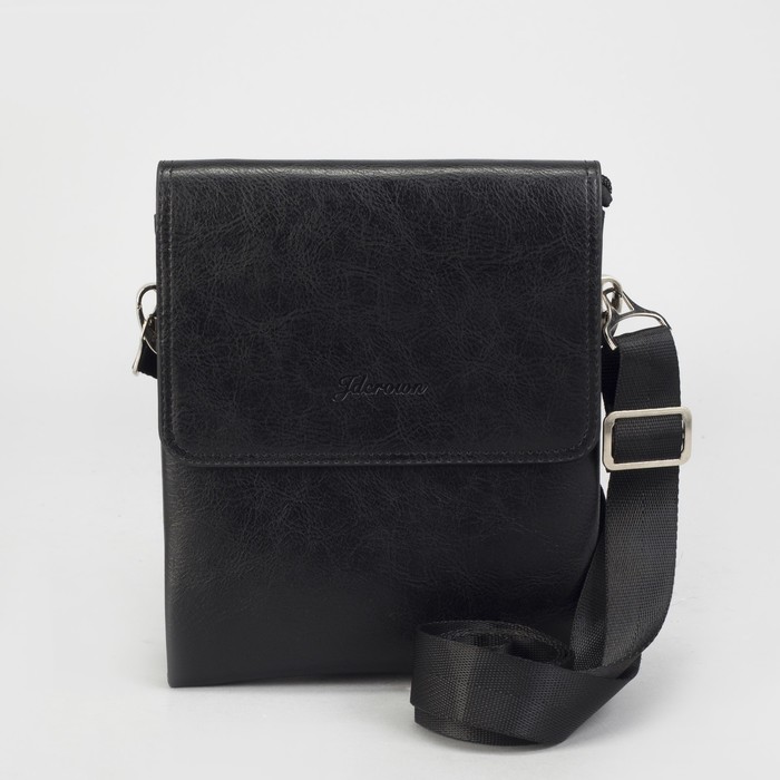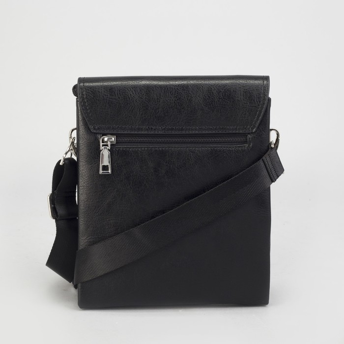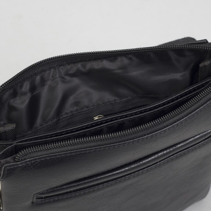 Планшет мужской, 3 отдела на молниях, 2 наружных кармана, длинный ремень, цвет чёрный
