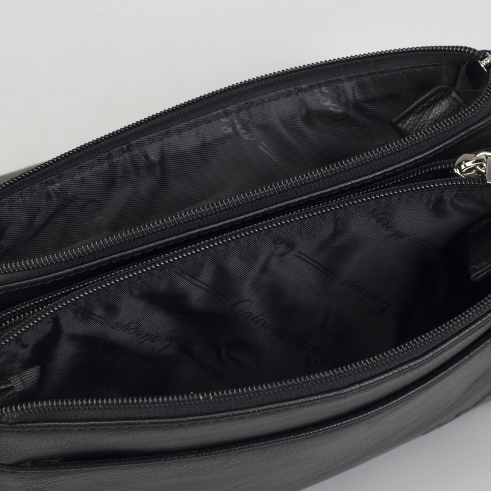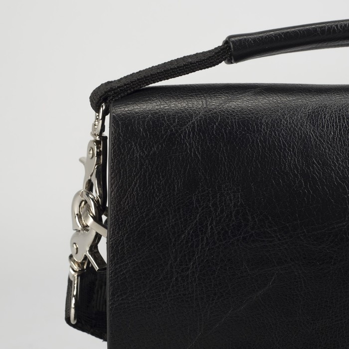 Планшет мужской, 3 отдела на молниях, 2 наружных кармана, длинный ремень, цвет чёрный
