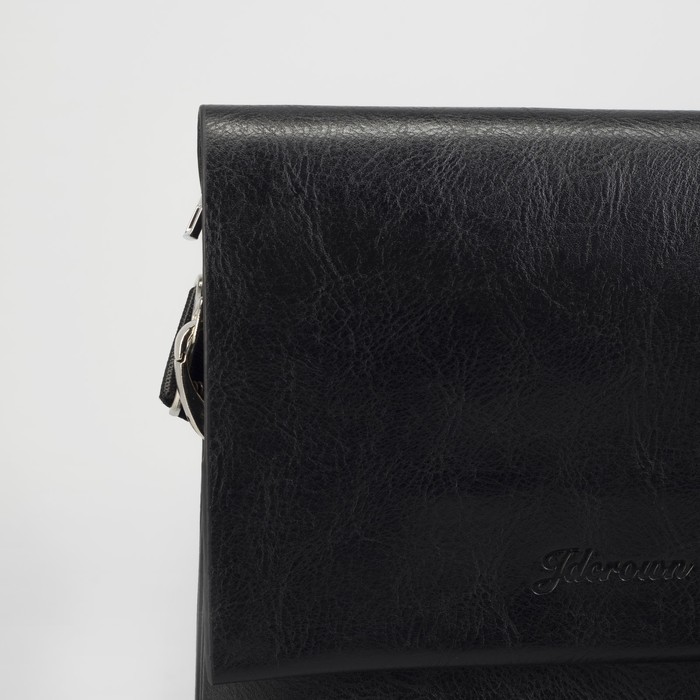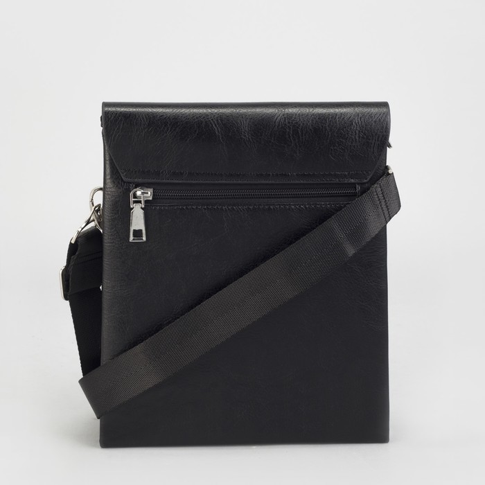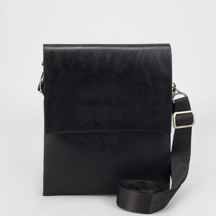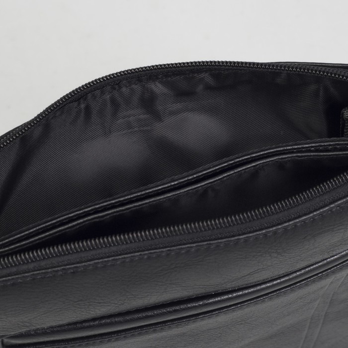 Планшет мужской, 3 отдела на молниях, 2 наружных кармана, длинный ремень, цвет чёрный