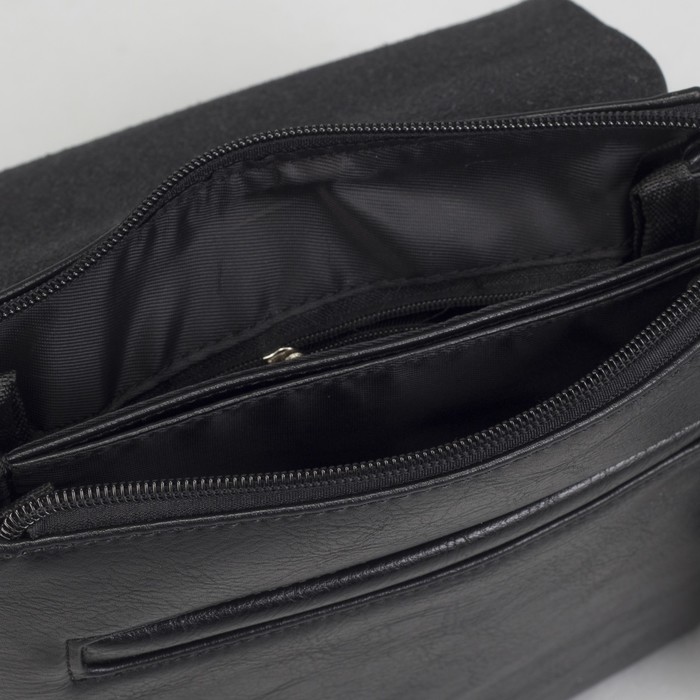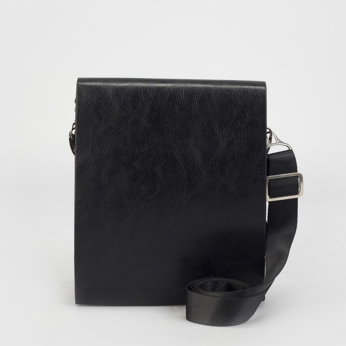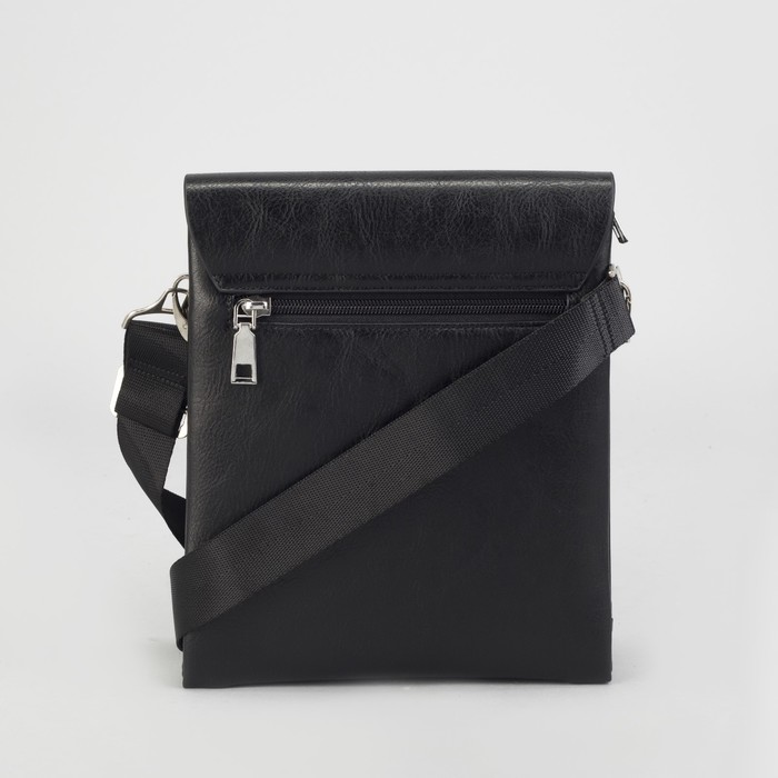 Планшет мужской, 3 отдела на молниях, 2 наружных кармана, длинный ремень, цвет чёрный