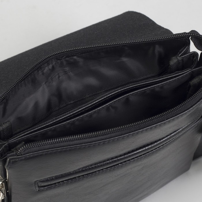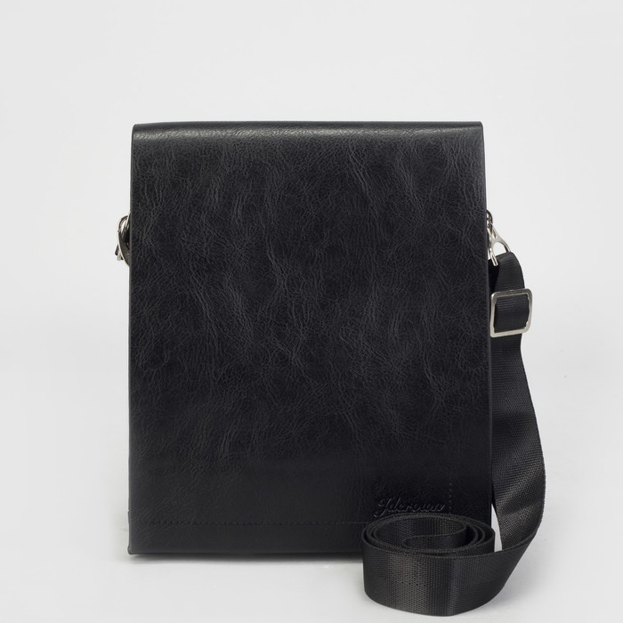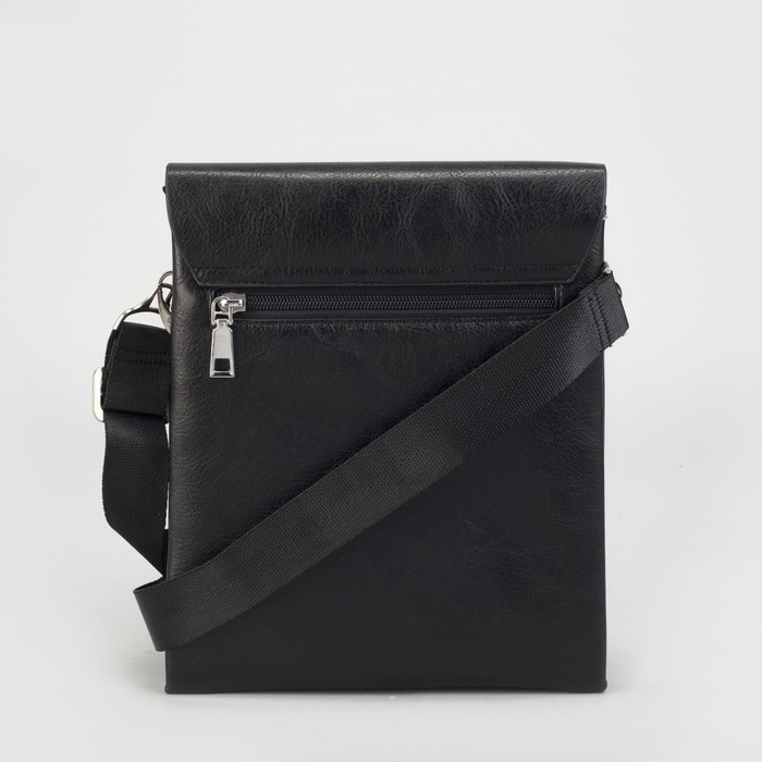 Планшет мужской, 3 отдела на молниях, 2 наружных кармана, длинный ремень, цвет чёрный