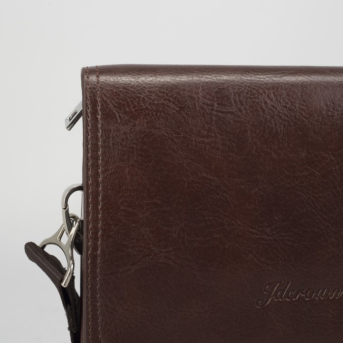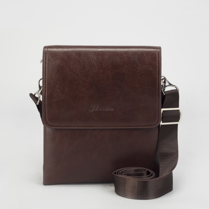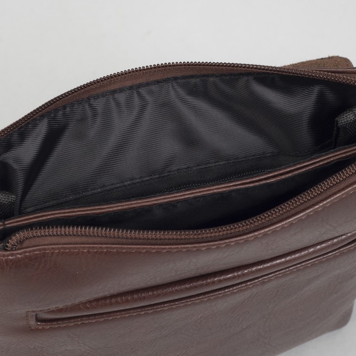 Планшет мужской, 3 отдела на молниях, 2 наружных кармана, длинный ремень, цвет коричневый