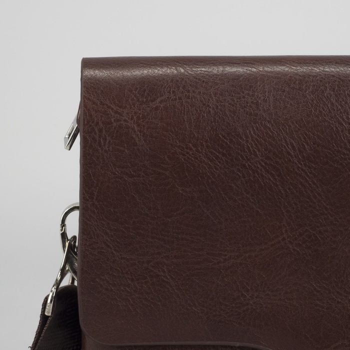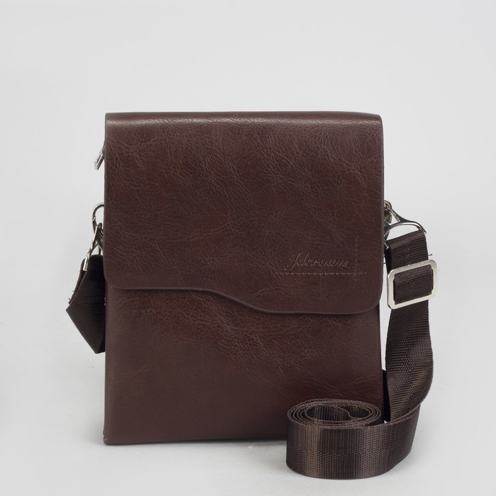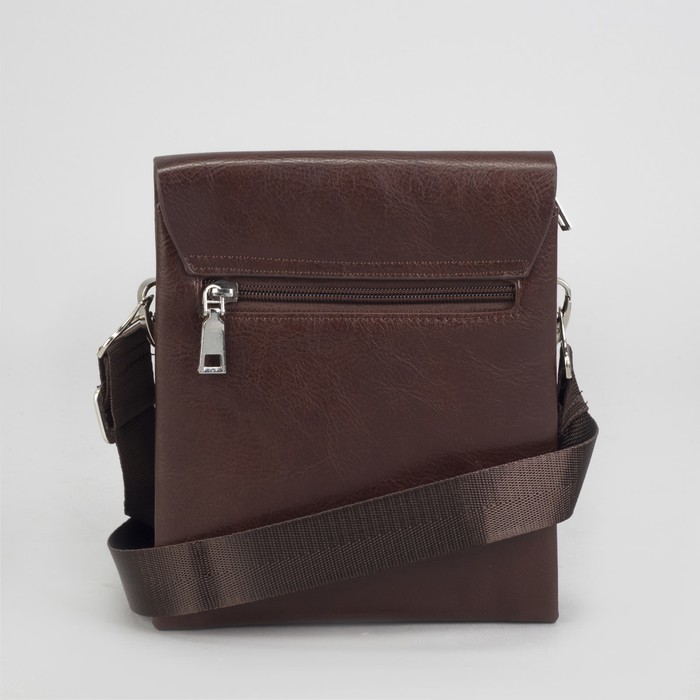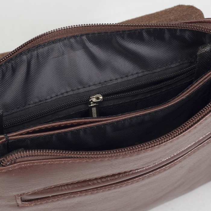 Планшет мужской, 3 отдела на молниях, 2 наружных кармана, длинный ремень, цвет коричневый