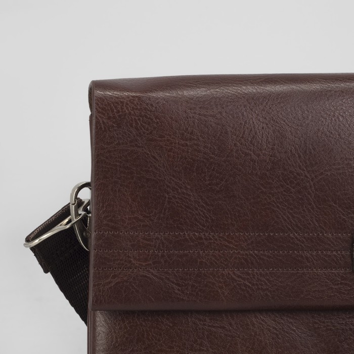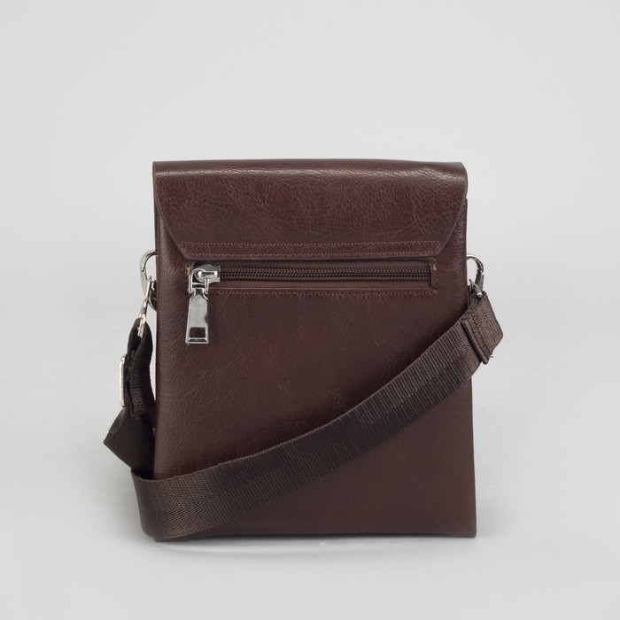 Планшет мужской, 3 отдела на молниях, 2 наружных кармана, длинный ремень, цвет коричневый