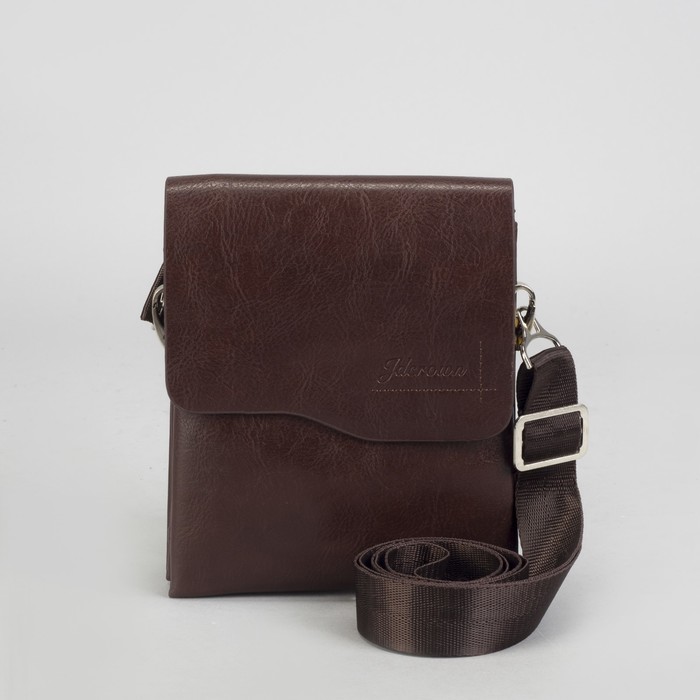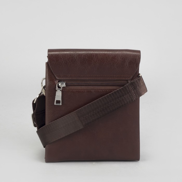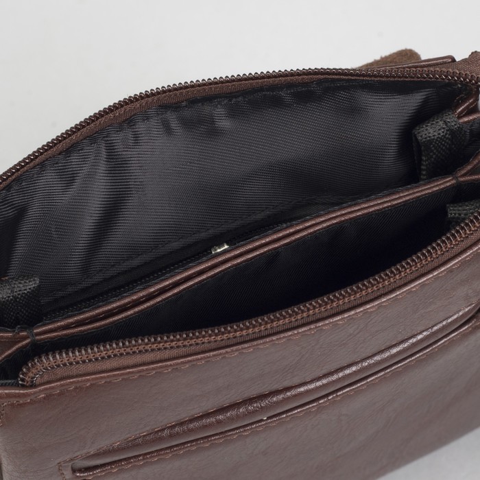 Планшет мужской, 3 отдела на молниях, 2 наружных кармана, длинный ремень, цвет коричневый