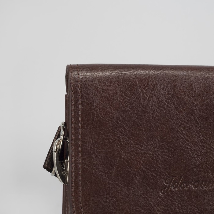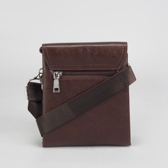 Планшет мужской, 3 отдела на молниях, 2 наружных кармана, длинный ремень, цвет коричневый