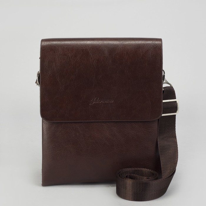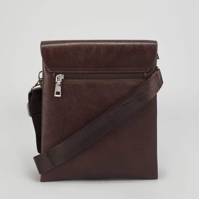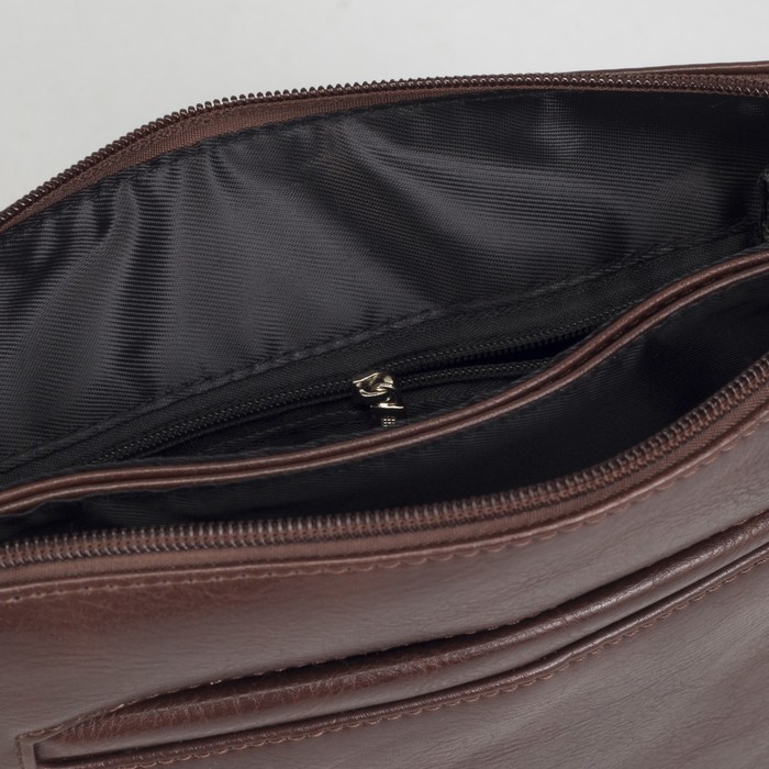 Планшет мужской, 3 отдела на молниях, 2 наружных кармана, длинный ремень, цвет коричневый