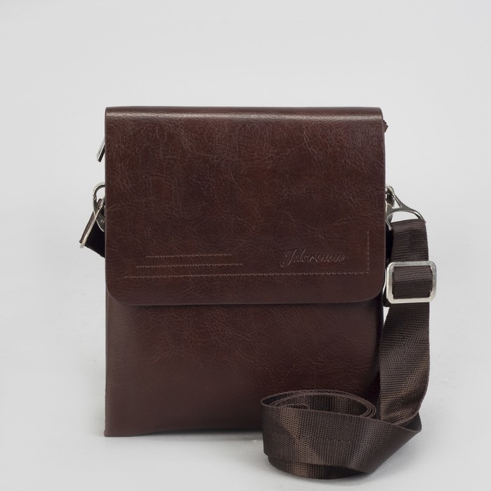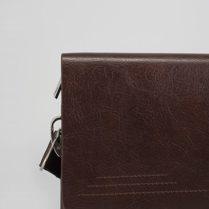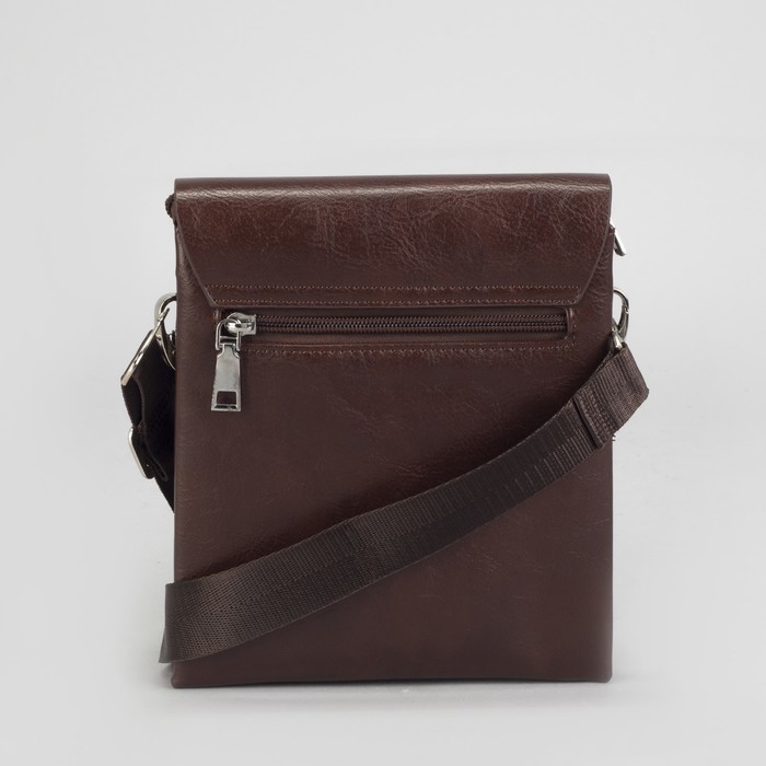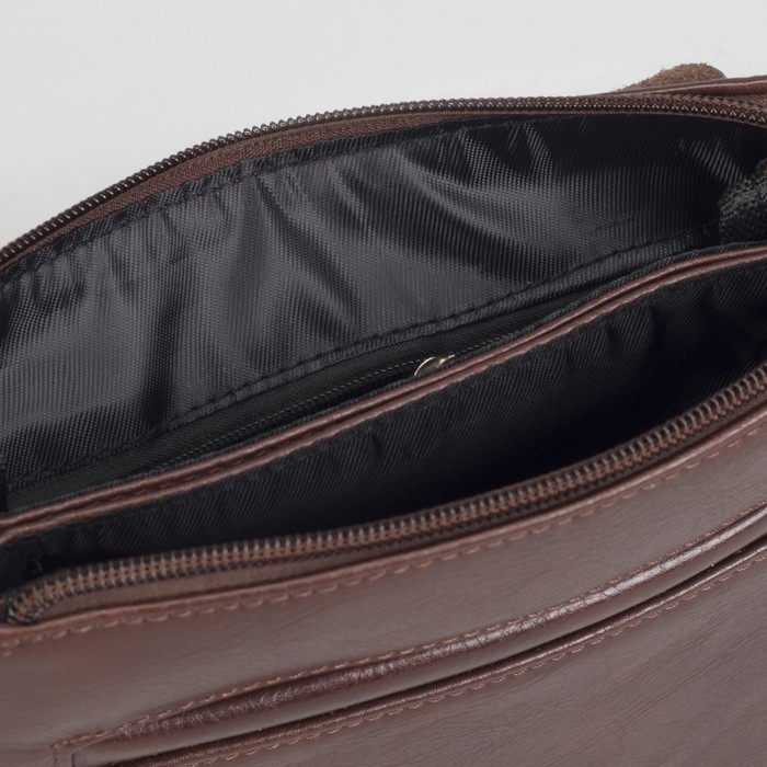 Планшет мужской, 3 отдела на молниях, 2 наружных кармана, длинный ремень, цвет коричневый
