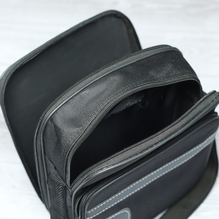 Планшет мужской, 3 отдела, наружный карман, регулируемый ремень, цвет чёрный