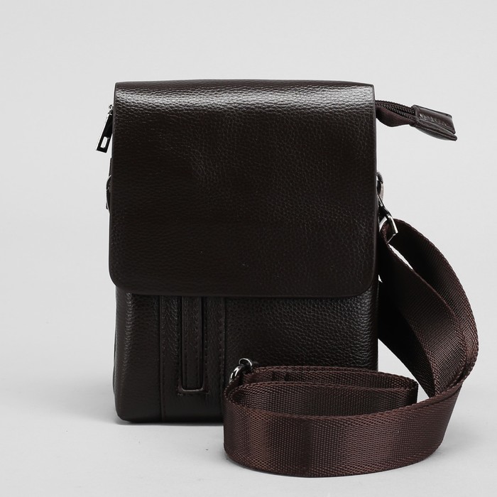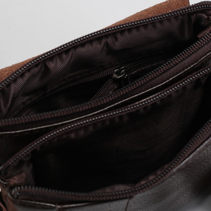 Планшет мужской, на пояс, 2 отдела на молниях, наружный карман, регулируемый ремень, цвет коричневый