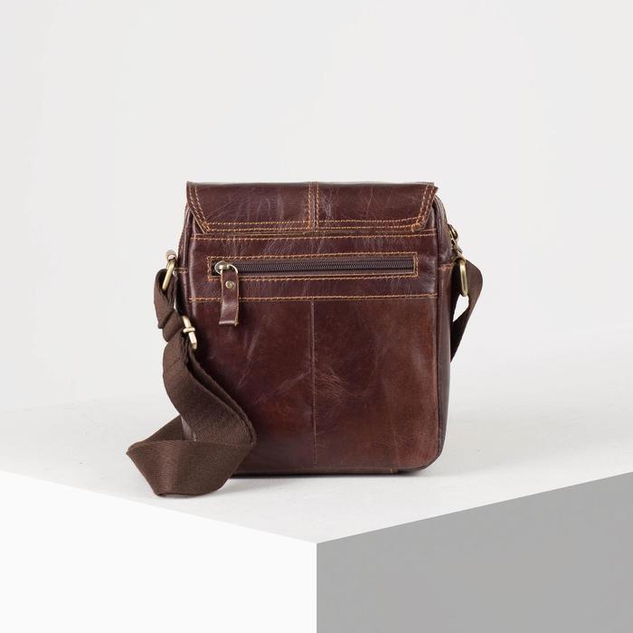 Планшет мужской, отдел на клапане, 2 наружных кармана, длинный ремень, цвет коричневый