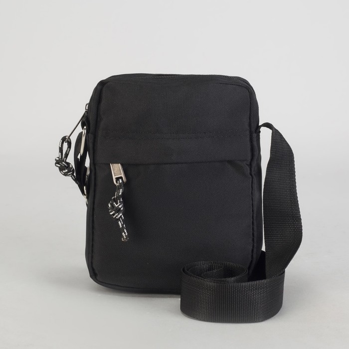 Планшет мужской, отдел на молнии, 2 наружных кармана, регулируемый ремень, цвет чёрный