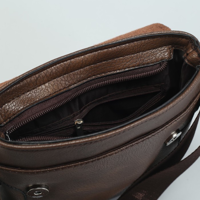 Планшет мужской, отдел на молнии, 2 наружных кармана, регулируемый ремень, цвет коричневый