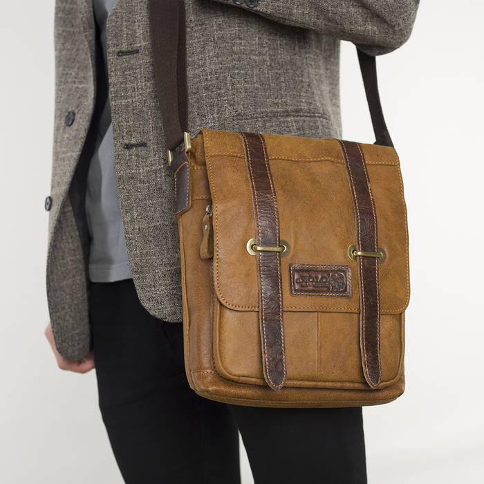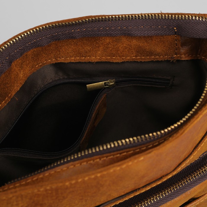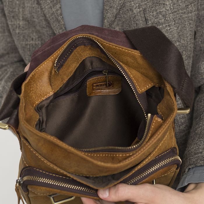 Планшет мужской, отдел на молнии, 3 наружных кармана, длинный ремень, цвет коричневый