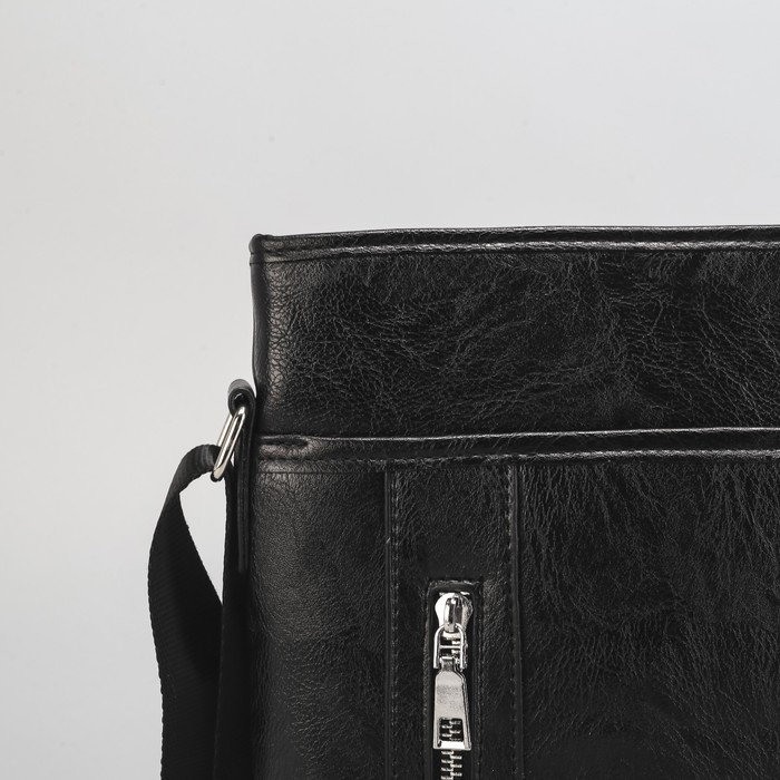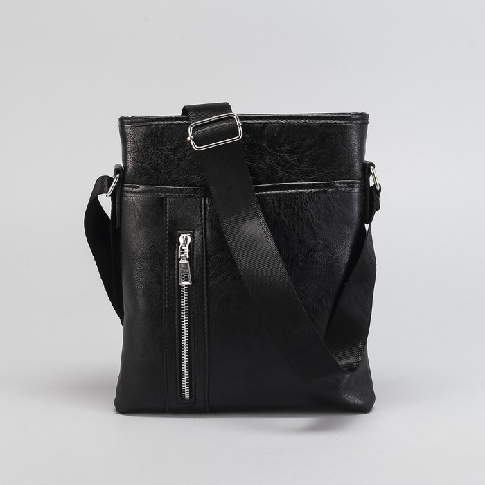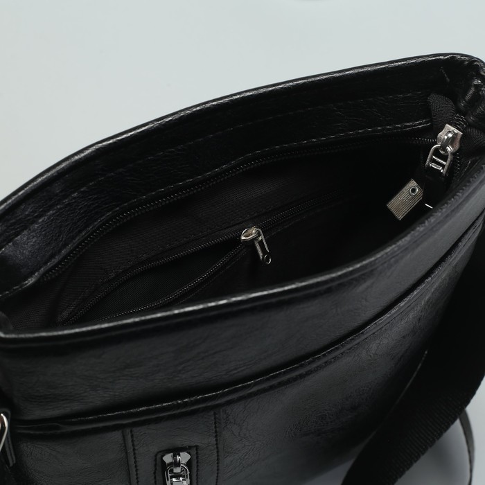 Планшет мужской, отдел на молнии, 3 наружных кармана, регулируемый ремень, цвет чёрный