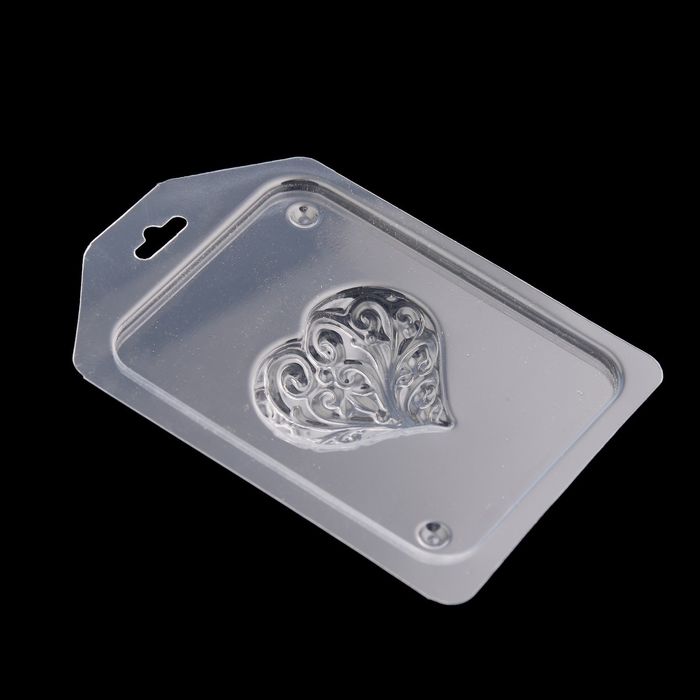 Пластиковая форма для мыла "Сердце узорное" 6х5,5 см