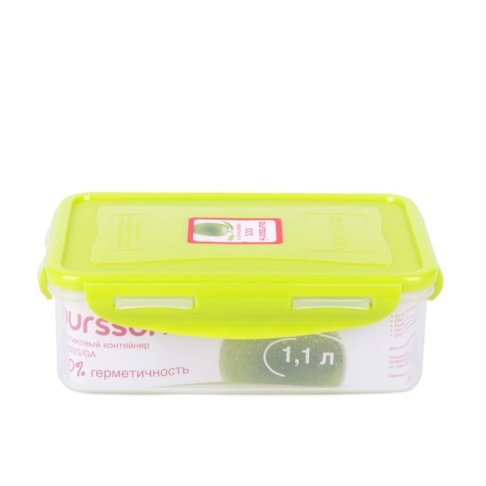 Пластиковый контейнер Oursson, салатовая крышка, 1,1 л, прямоугольный