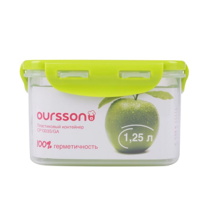Пластиковый контейнер Oursson, салатовая крышка, 1,25 л, квадратный